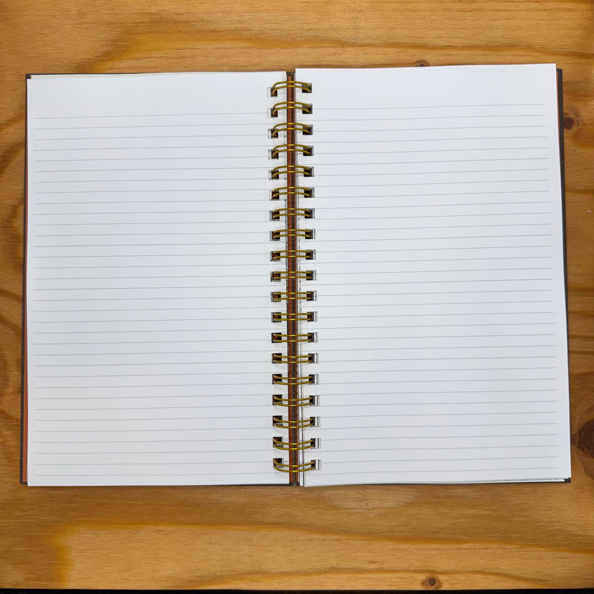 Hardcover notebook with at least 100 new lined pages separated by pages from the original book. Front inside cover has a paper pocket with a library-style card to customize your notebook or leave a personalized note if giving as a gift. Spiral bound with a simple and sturdy wire gold spiral binding.